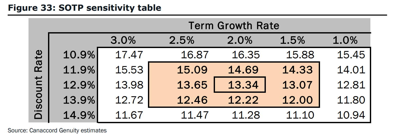 Canaccord conducts a sensitivity analysis of the Israeli pharmaceutical firm InterCure's (INCR) estimated share price in figure 33 on page 30: